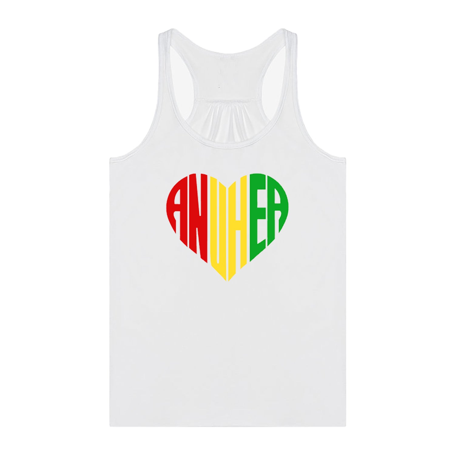 The classic Anuhea concert tank on white, with the iconic Red Yellow Green Anuhea heart design on the front.